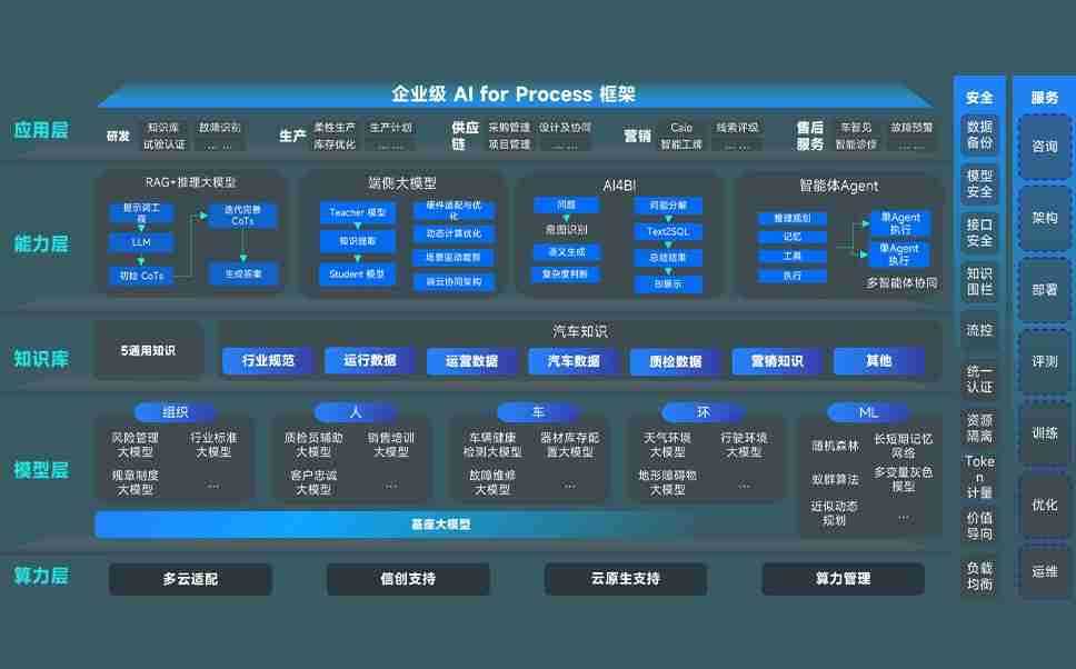 端到端的一站式AI工作空间深度融合了从企业战略规划到日常经营的全流程业务板块,,,定向解决车企内部领域多、、、部门多、、链条长、、、场景碎片化等难题,,,支持车企快速构建以AI为核心的生产力写作体系,,,,实现任务执行与AI能力的无缝集成与交互